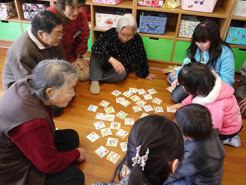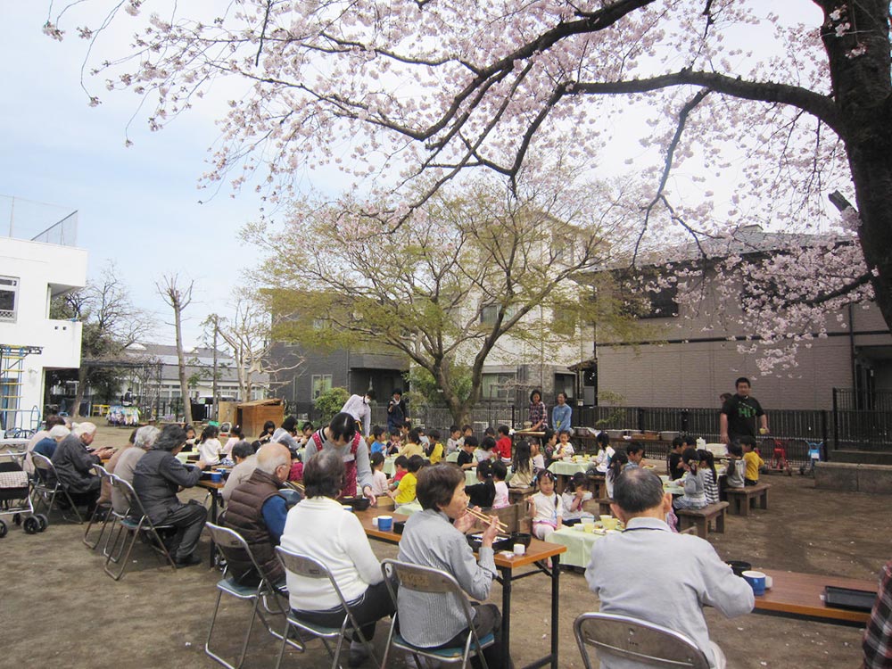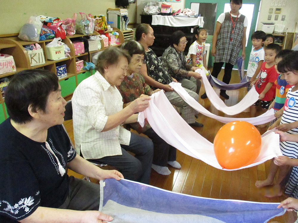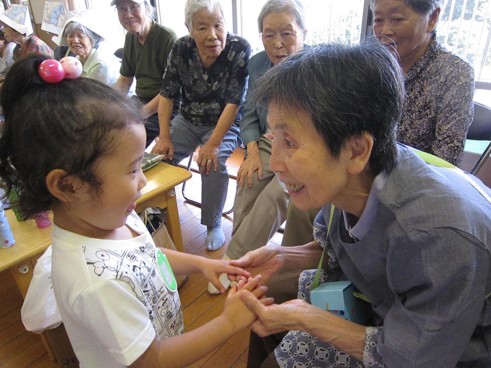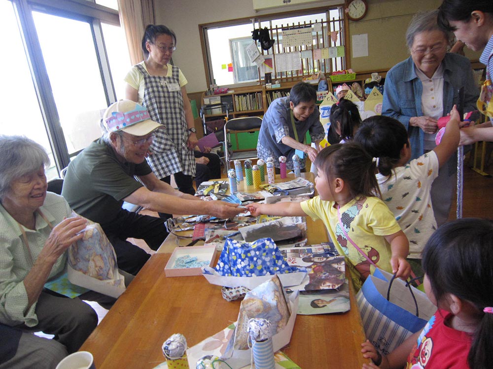 秋川あすなろ保育園(隣接)や西秋留保育園の子ども達とは、1年をとおして様々な活動をしています。子ども達との交流は、心身を刺激し元気をもらうことが出来るまたとない機会であり、長年培ってきた知識・経験を次世代に伝えていく貴重な場ともなっています。