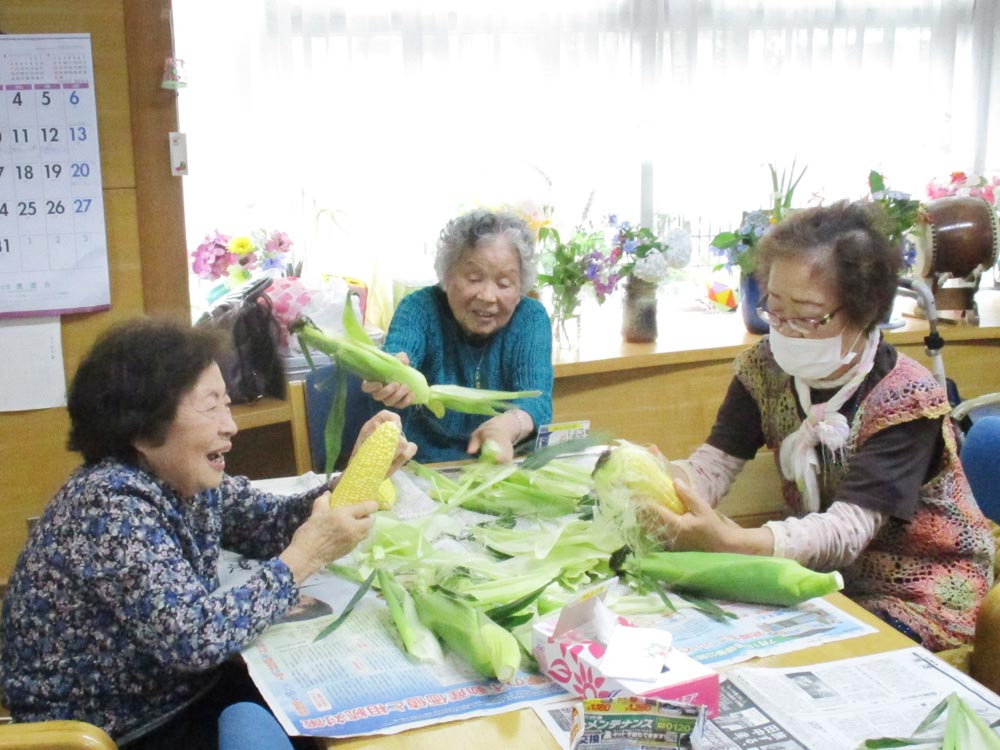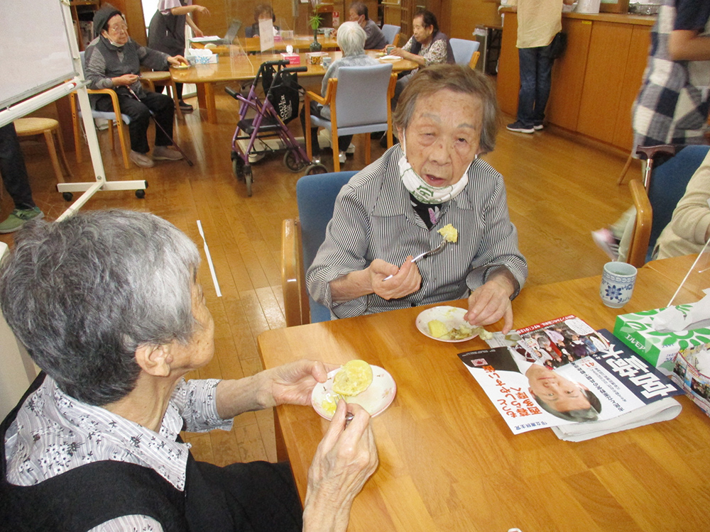 「あすなろみんなの家」は、利用者さんの気持ちを一番に優先させる場所でありたいと考えています。趣味活動やゲーム、休息など、それぞれのペースに合わせて過ごしていただいています。活動メニューの中では、歩行訓練をかねた散歩や保育園の子ども達も交えた収穫作業や年中行事などをとおして、季節の移り変わりを感じていただけるよう心がけています。