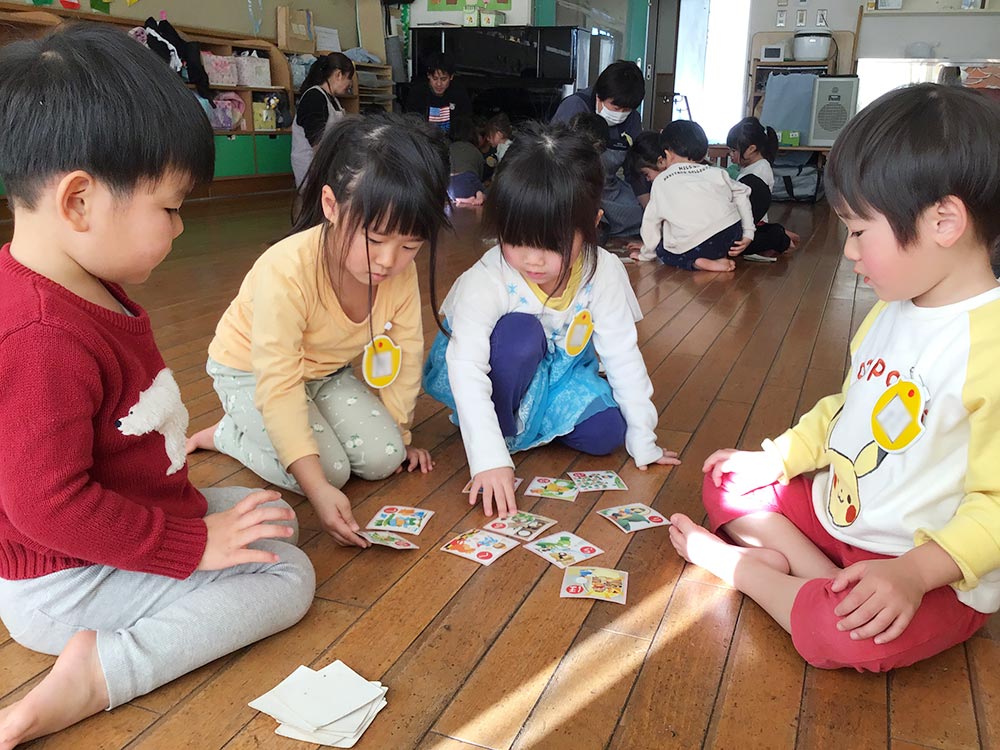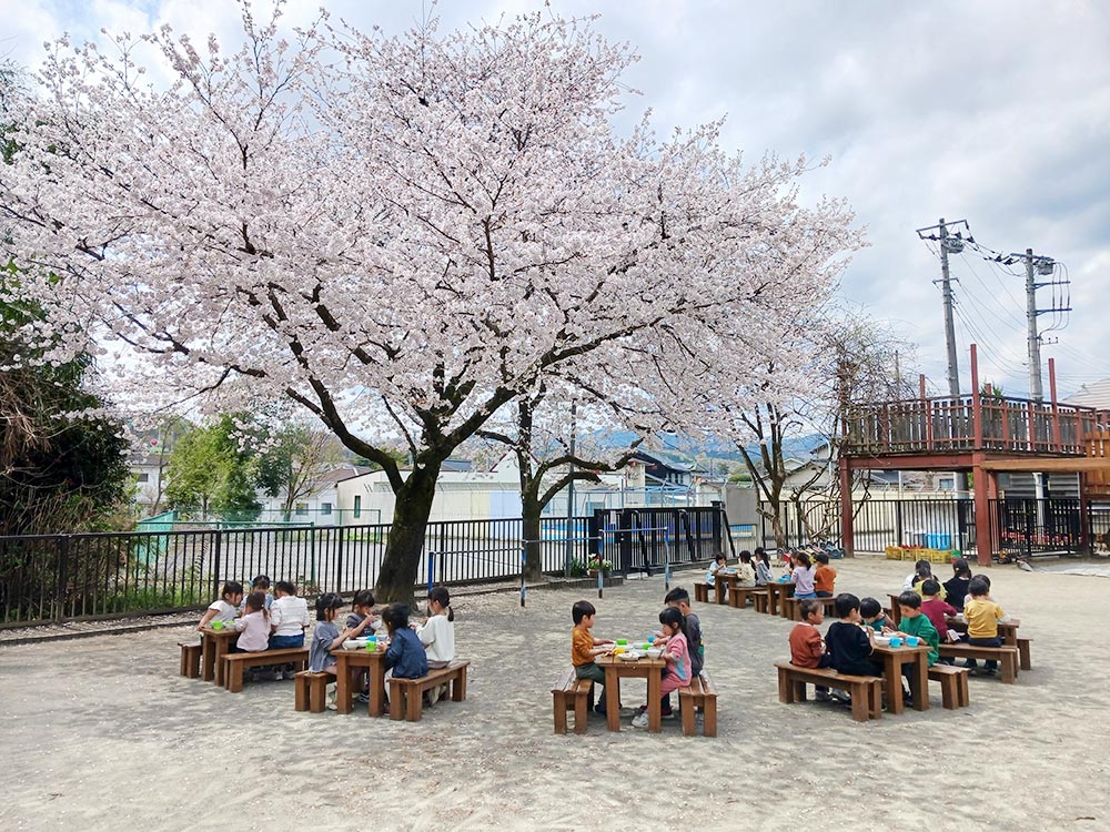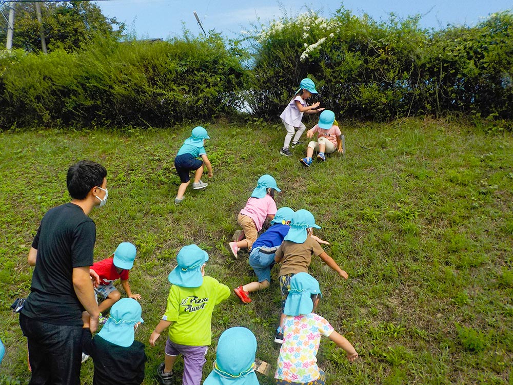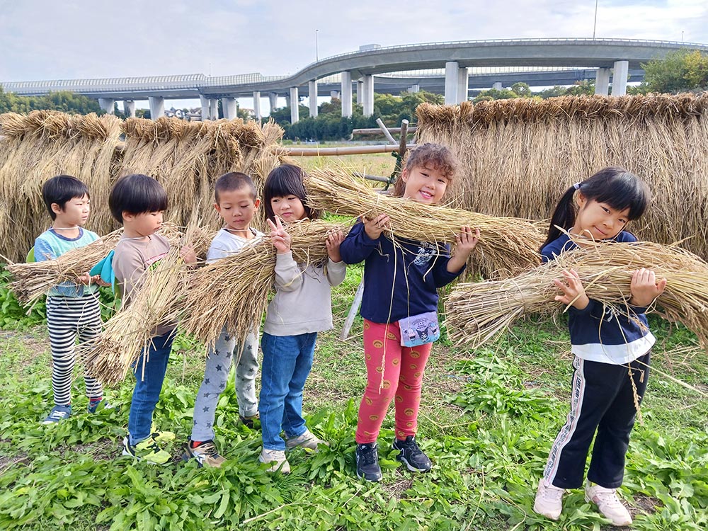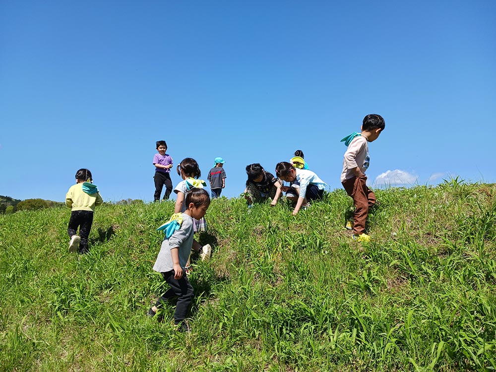 年齢に応じて近くの公園、神社、川原、田んぼなどに出かけます。